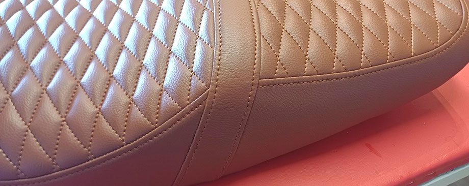 Mais aussi les pavillons, planche de bord, portières, selles de motos sur mesure, sièges, bains de soleil, housses et coussinage...